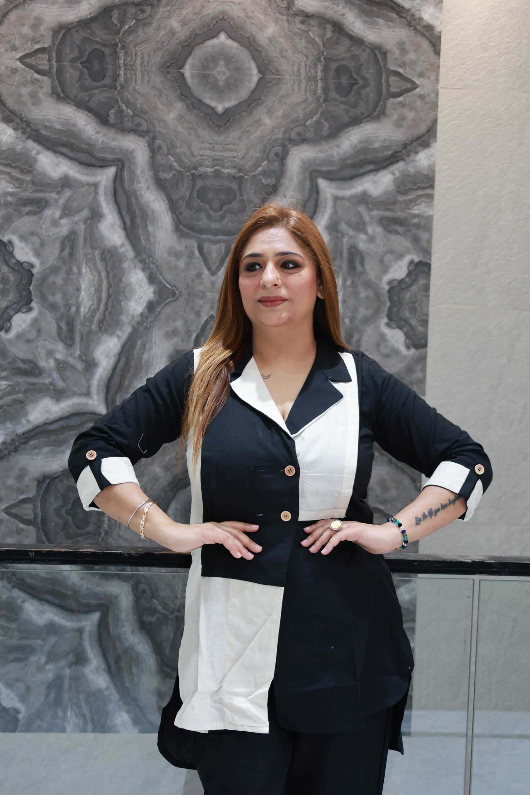 Upgrade your wardrobe with this stylish Black & White Cotton Cord Set from Balvique. Crafted from soft and breathable cotton fabric, this outfit offers the perfect blend of comfort and elegance. The classic black and white combination gives it a timeless look, making it ideal for casual outings, daily wear, or relaxed gatherings. Designed with a modern fit and fine stitching, this cord set ensures both style and ease throughout the day. Perfect for women who love effortless fashion with a touch of sophistication.