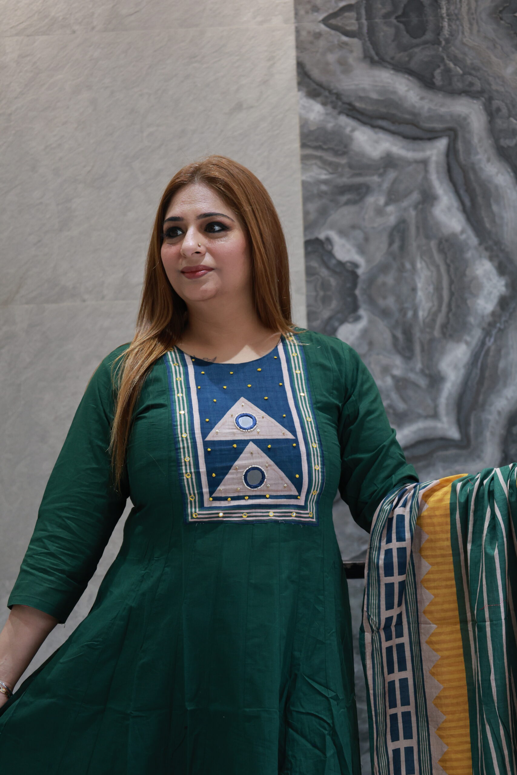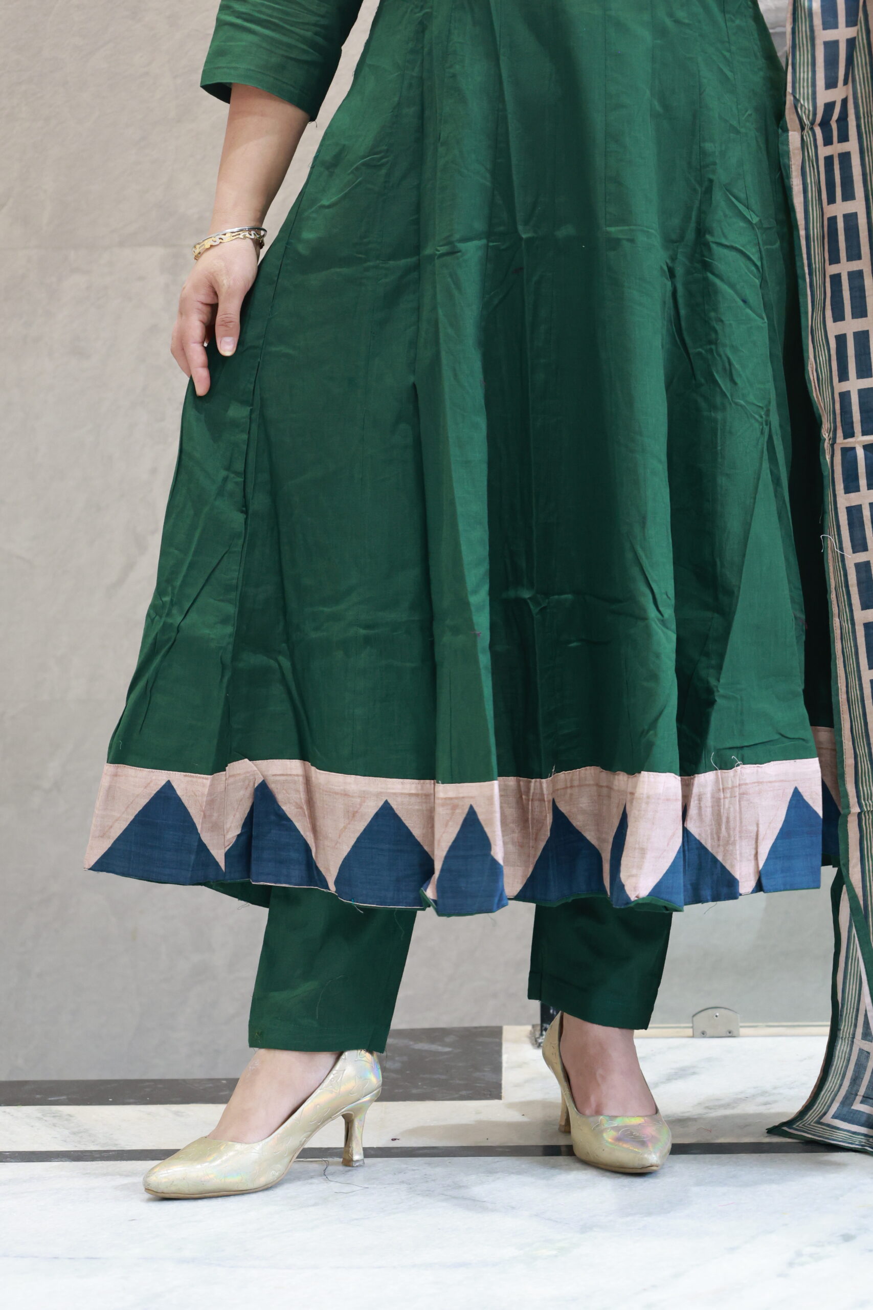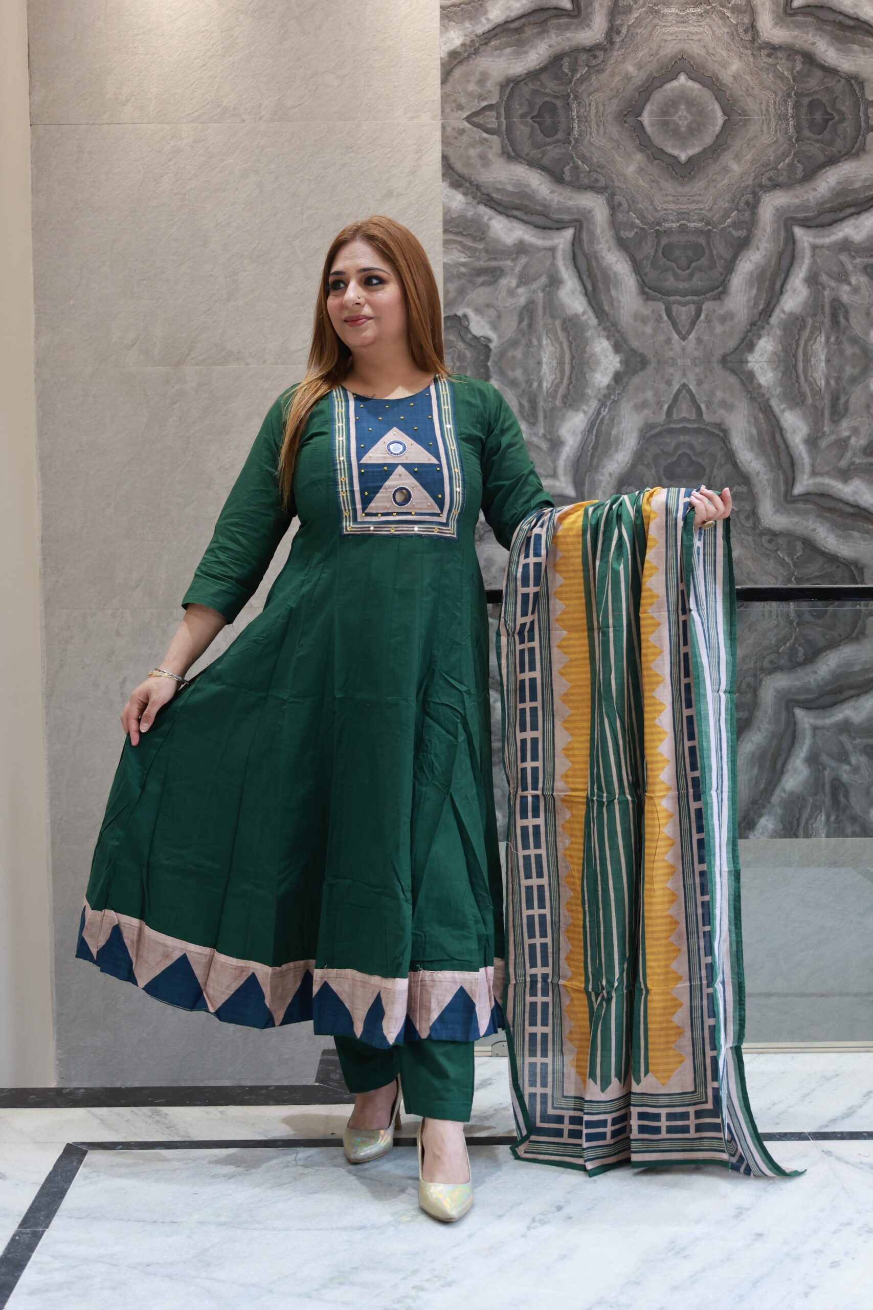 Be the first to review “Dark Green Cotton Dress With Elegant Work”